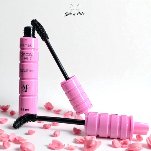 A máscara Caracol 3 em 1 da Mia Make vem com um pincel giratório inovador que facilita a aplicação e potencializa o efeito nos cílios, proporcionando um olhar impactante e definido.
