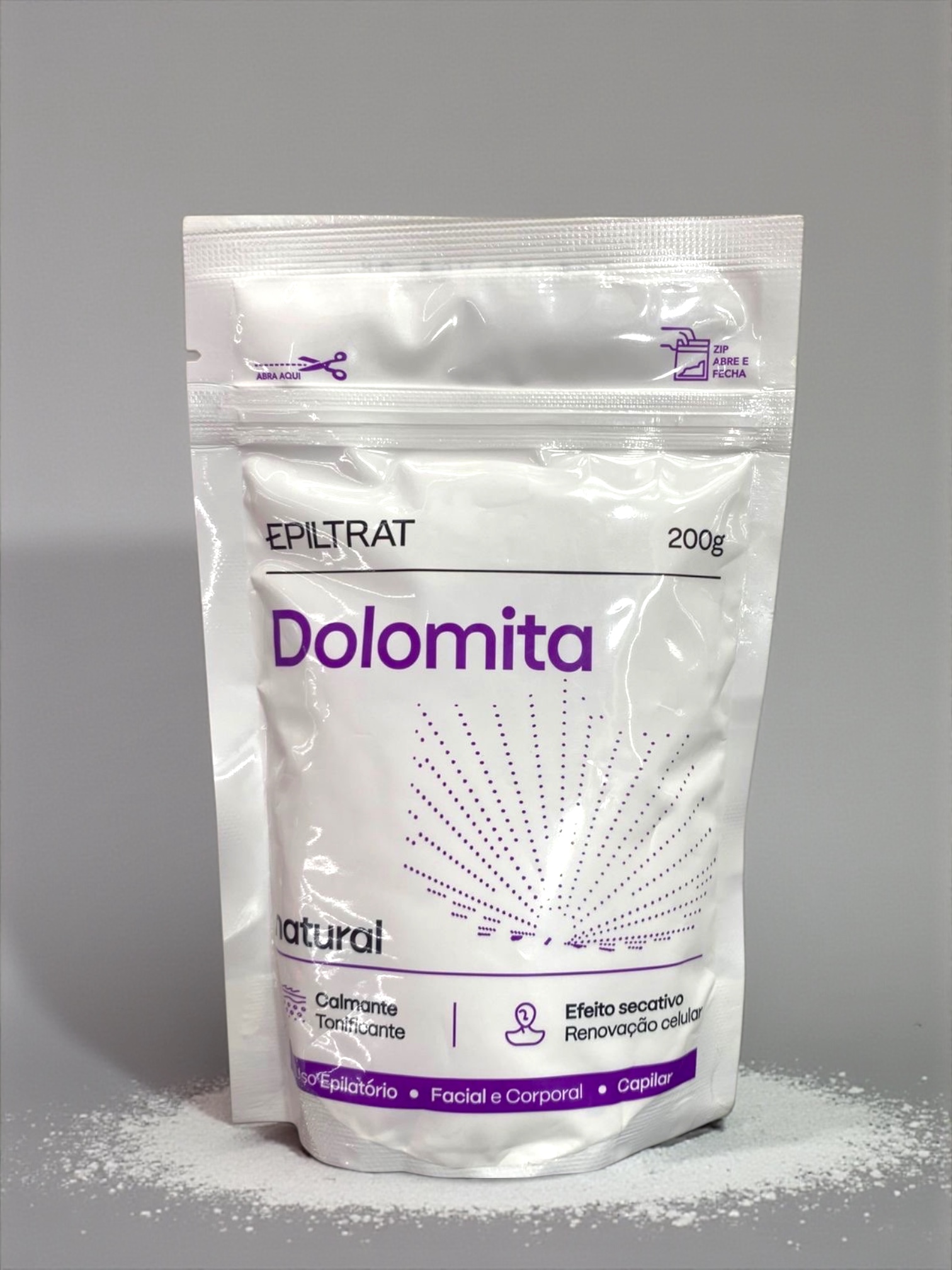 é um mineral natural (carbonato de cálcio e magnésio) amplamente usado como suplemento para saúde óssea e muscular, e em cosméticos por suas propriedades calmantes, cicatrizantes e revitalizantes para pele e cabelo, atuando na renovação celular, oleosidade e manchas. Ela é encontrada em pó fino, usada em máscaras faciais, corporais e como suplemento oral em cápsulas, auxiliando no equilíbrio mineral do corpo.