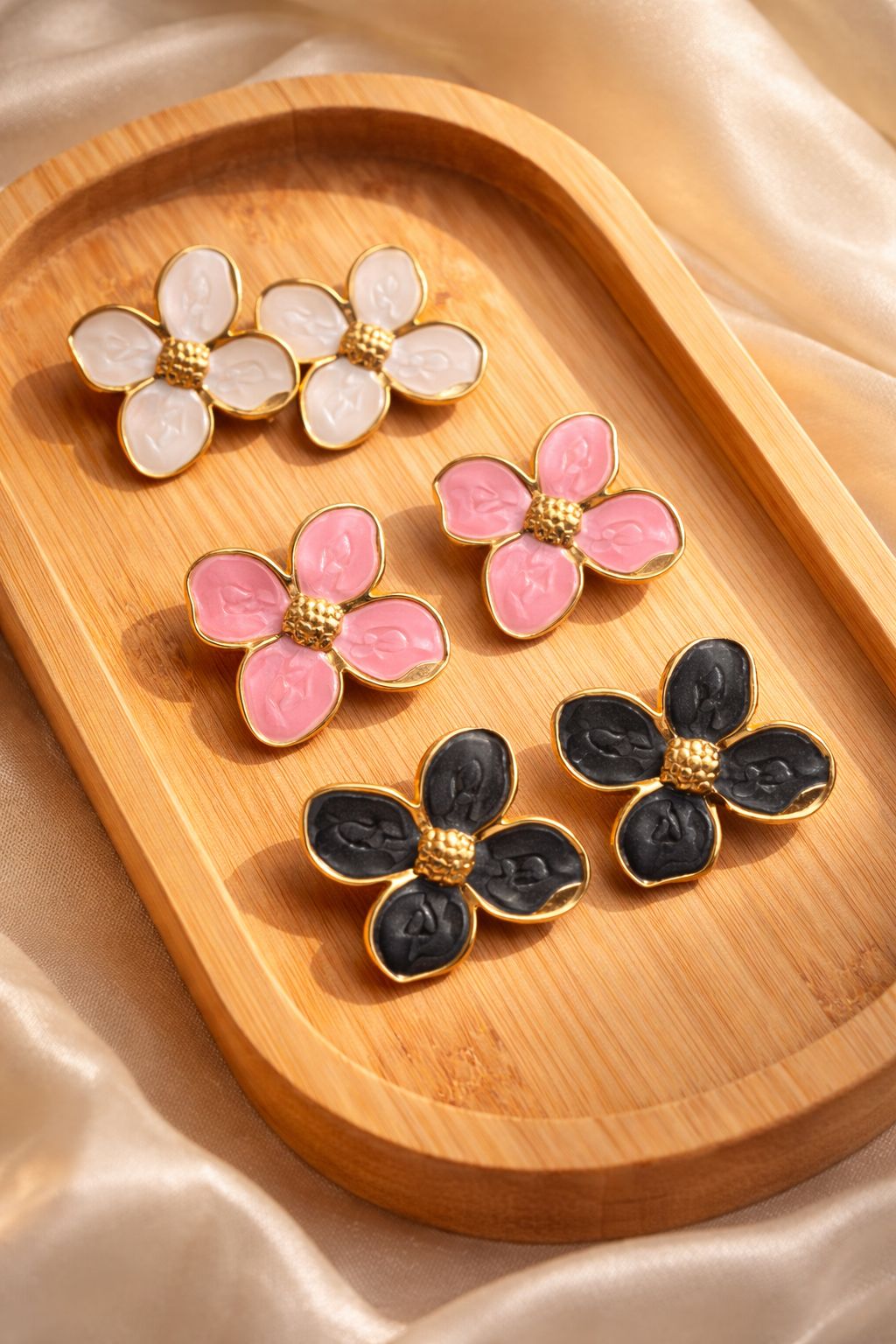 Delicados e encantadores, estes brincos em formato de flor trazem um design cheio de charme e elegância. O acabamento folheado realça o brilho e a beleza da peça, tornando-a perfeita para quem busca um acessório atemporal e feminino.