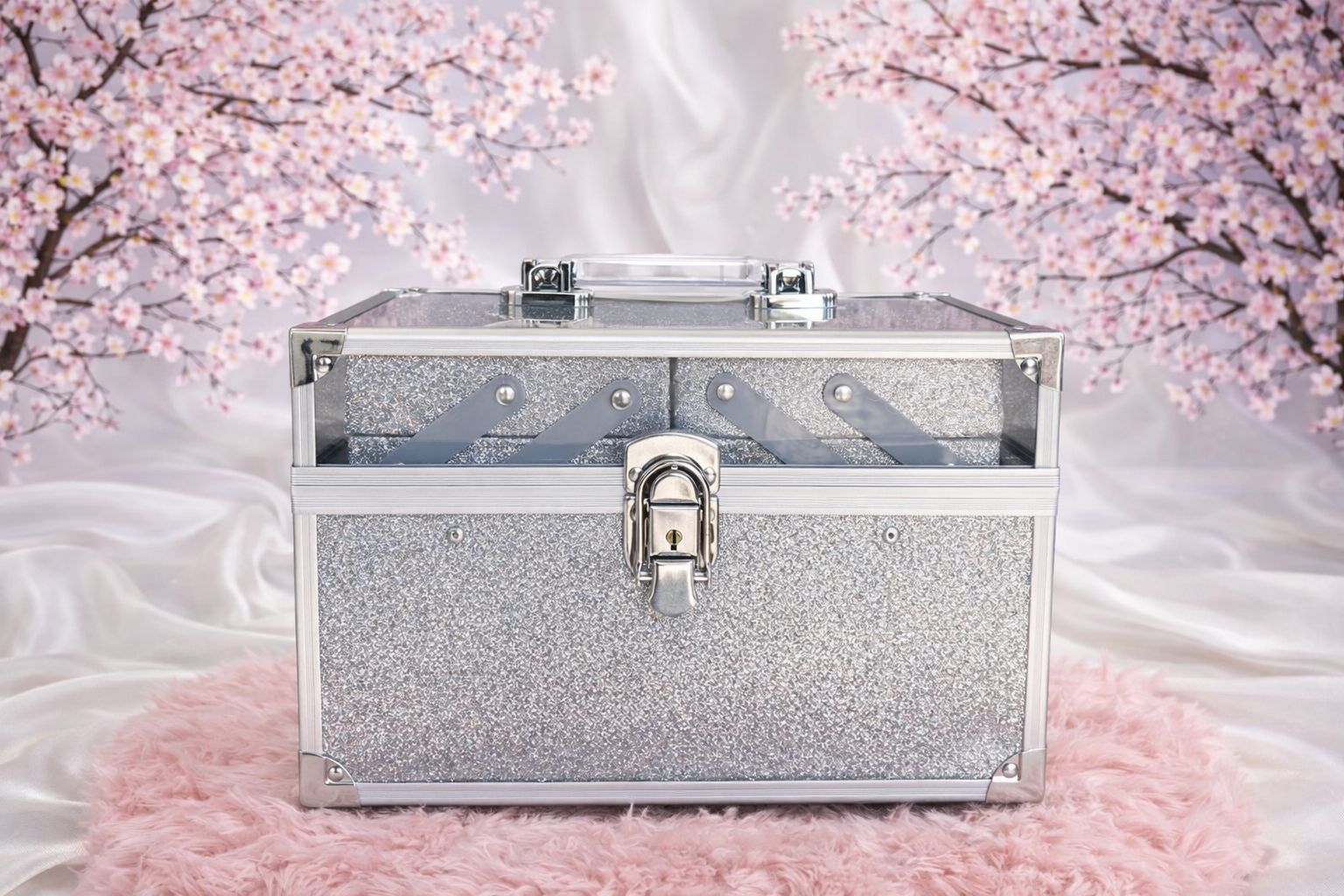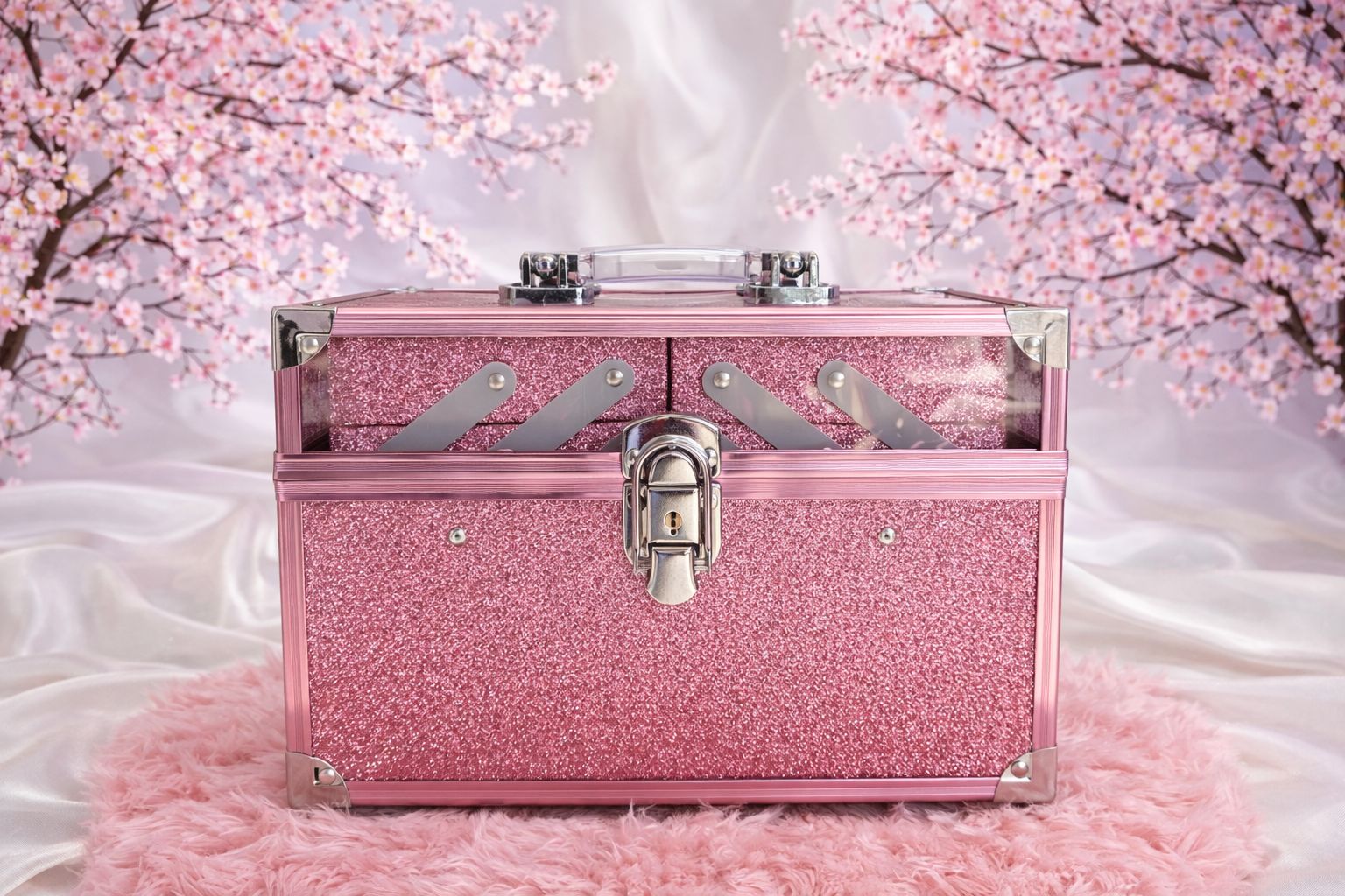 Transforme a organização em algo divertido e elegante! A maleta G com glitter oferece amplo espaço para guardar maquiagem, acessórios, joias ou itens pessoais, mantendo tudo organizado e protegido. Seu acabamento brilhante adiciona um toque de glamour, enquanto os compartimentos internos facilitam o armazenamento inteligente. Perfeita para quem não abre mão de praticidade e estilo em um só acessório.