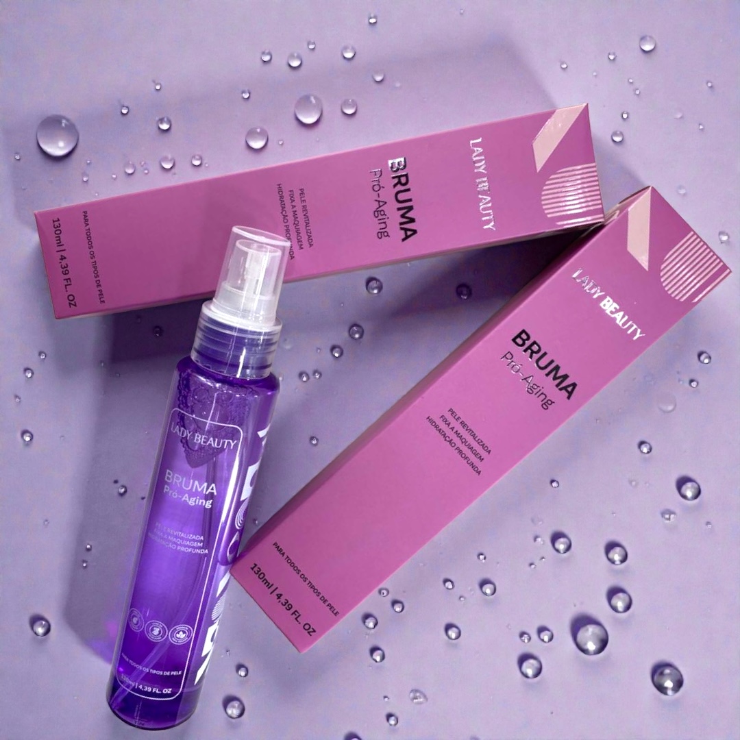 A Bruma Fixadora Pro-Aging da Lady Beauty é ideal para finalizar a maquiagem com leveza e eficiência.