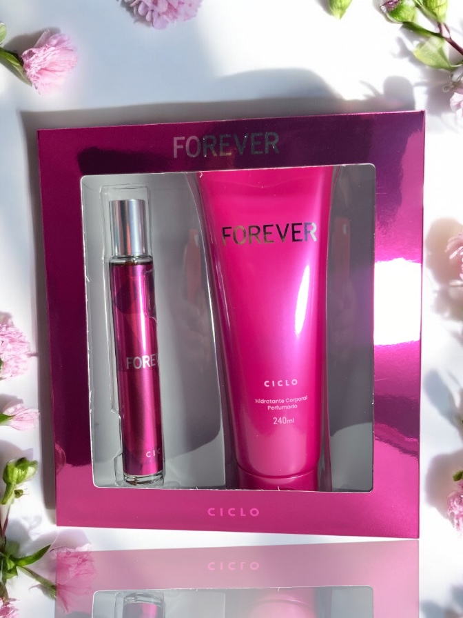 Forever traz notas deliciosas de frutas combinadas ao buquê floral de pétalas de jasmim e suave toque adocicado. Acompanha loção hidratante corporal com alta concentração de essências e ingredientes que deixam a pele macia e perfumada