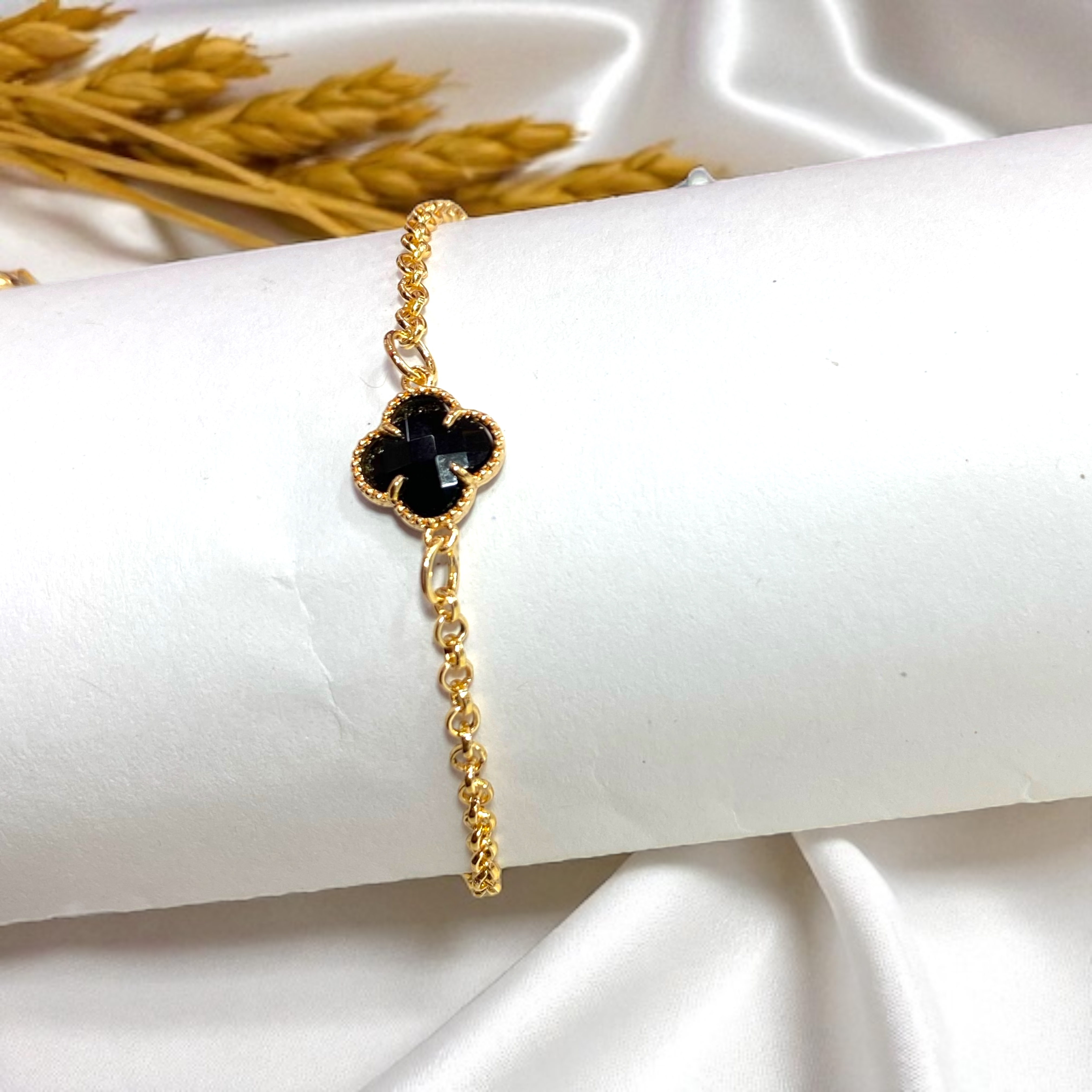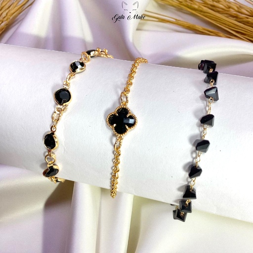 Pulseiras folheadas com pedrarias e trevo da sorte — um charme que vai além da beleza!
