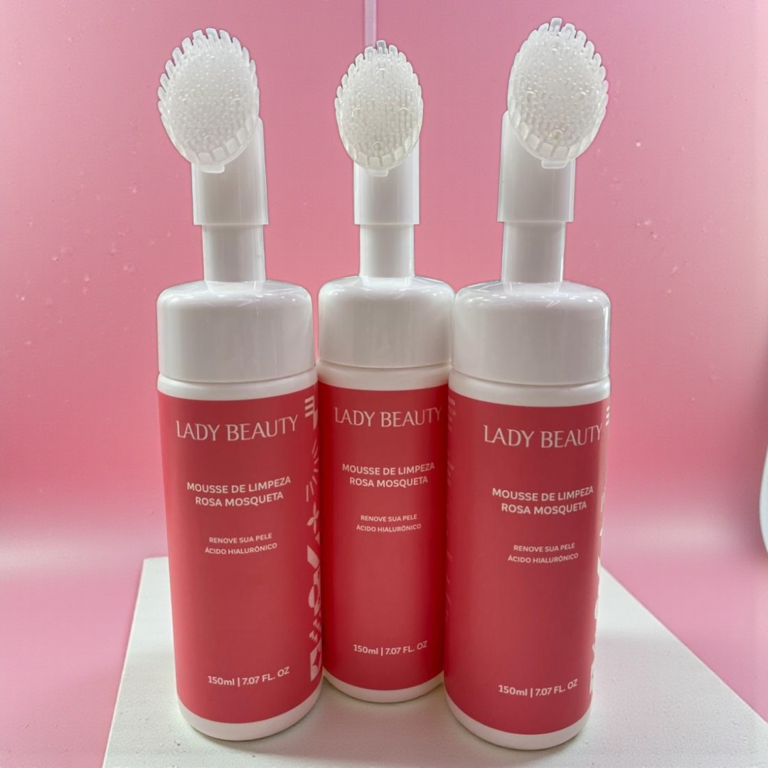 A Mousse de Limpeza Rosa Mosqueta da Lady Beauty limpa a pele de forma suave e eficaz, removendo impurezas e resíduos do dia a dia.