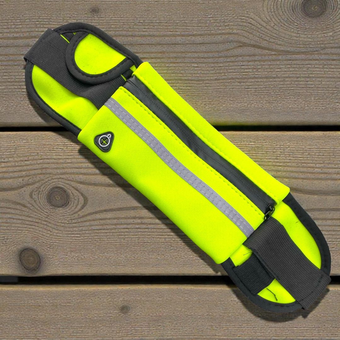 Possui compartimentos com zíper que mantêm objetos como celular, chaves, cartões e documentos bem protegidos. Seu design leve e ajuste regulável garantem conforto e liberdade de movimento durante o uso.